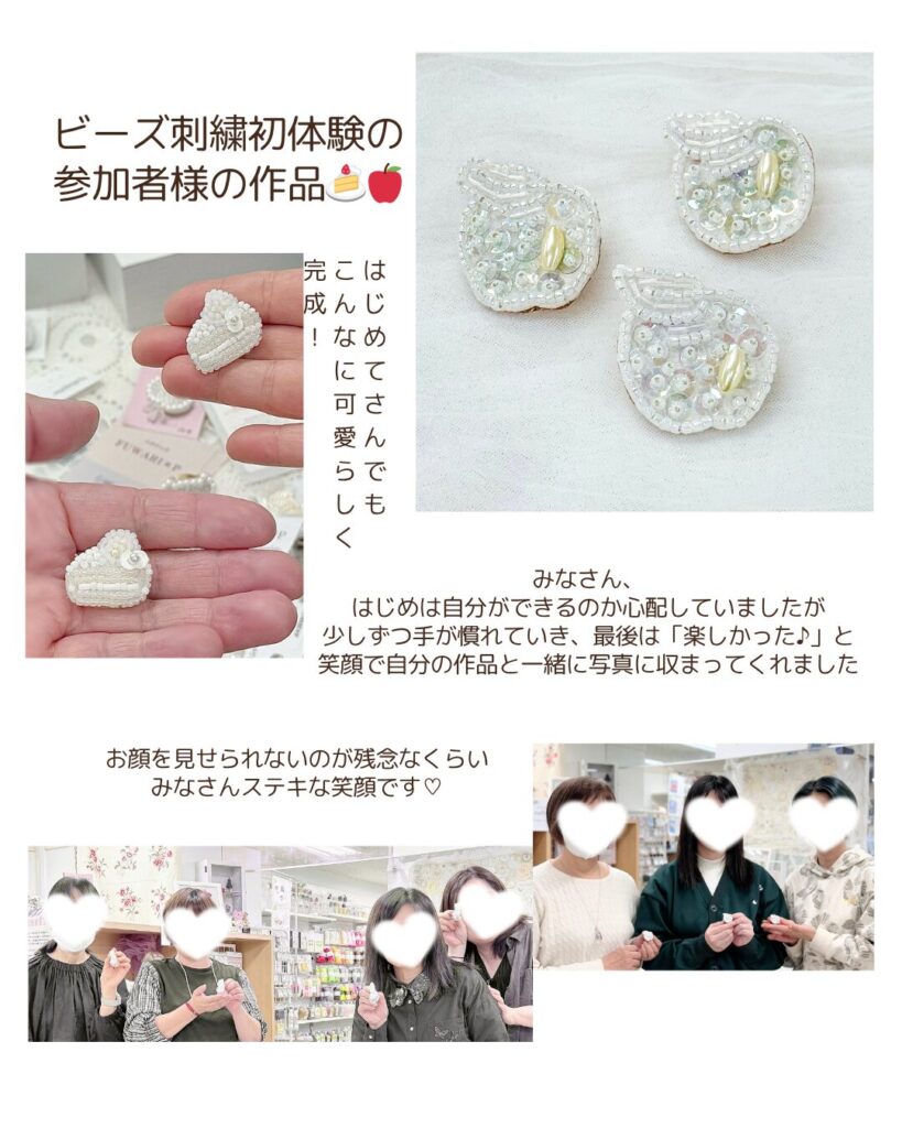 ぜひ一度ビーズ刺繍体験をしてみてくださいね!